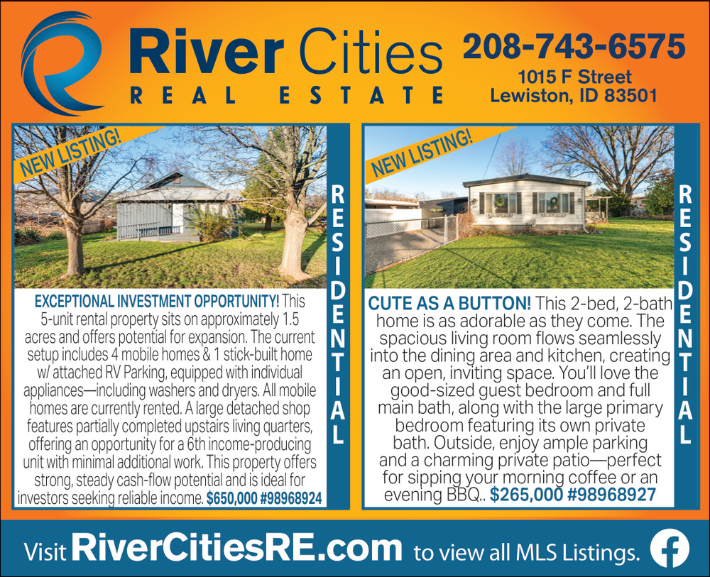 Dec 07, 2025. River Cities Real Estate Real Estate Ads from Lewiston Tribune