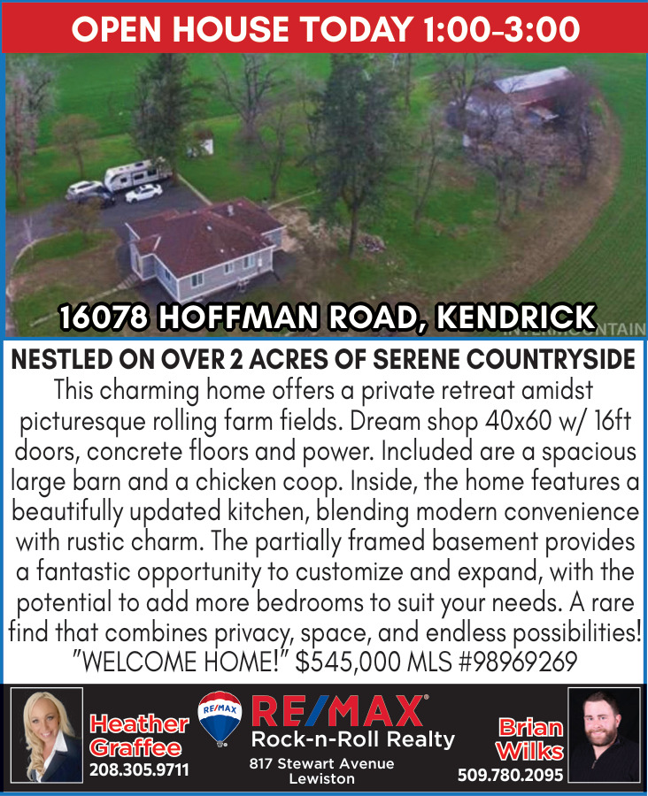 Jan 11, 2026. Re/Max Rock-n-Roll Realty - Heather Graffee & Brian Wilks Real Estate Ads from Lewiston Tribune