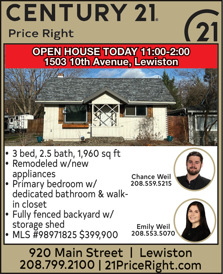 Jan 18, 2026. Century 21 Price Right Real Estate Ads from Lewiston Tribune