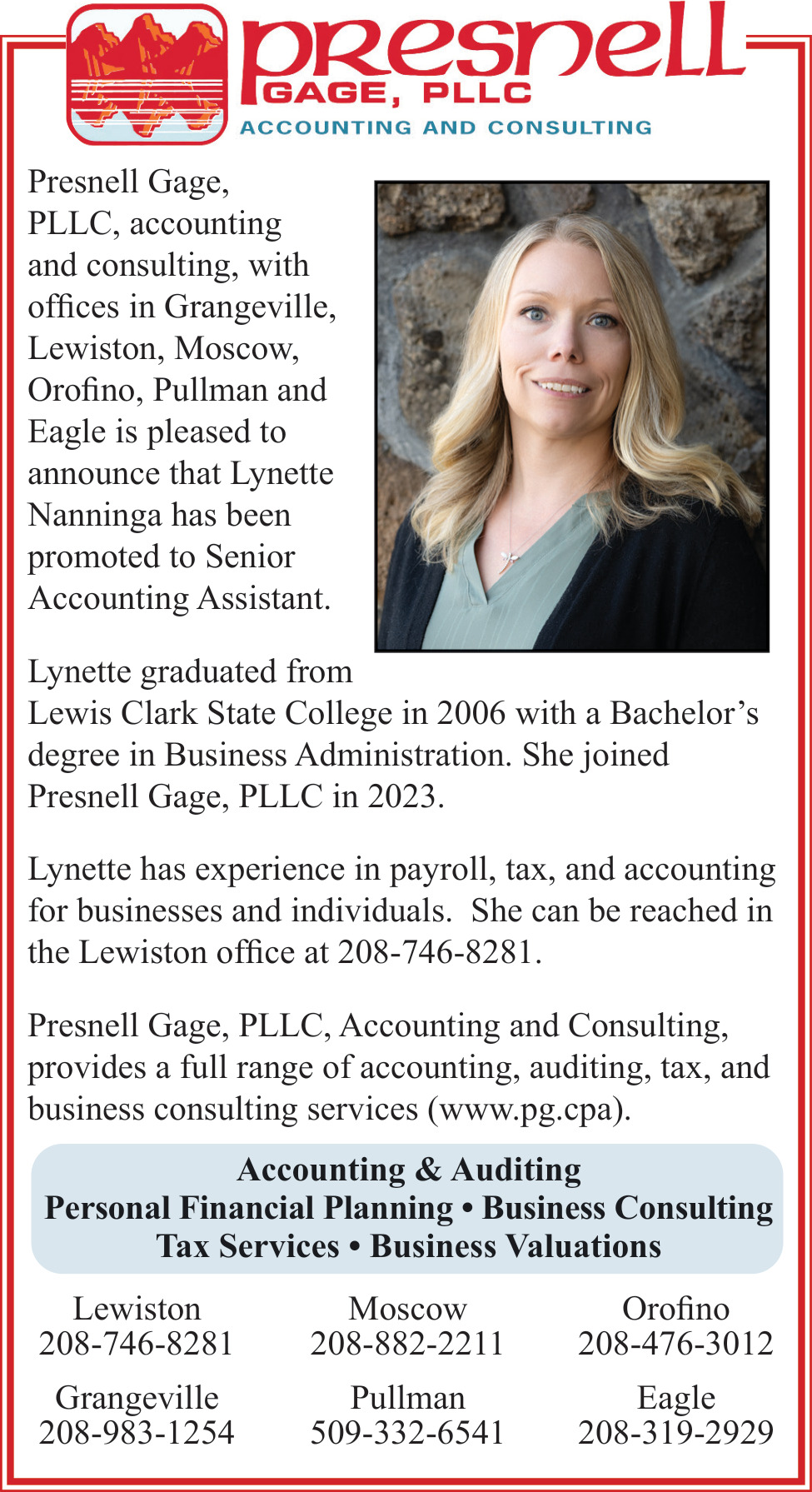 Feb 07, 2026. Presnell Gage, PLLC Accounting Ads from Lewiston Tribune
