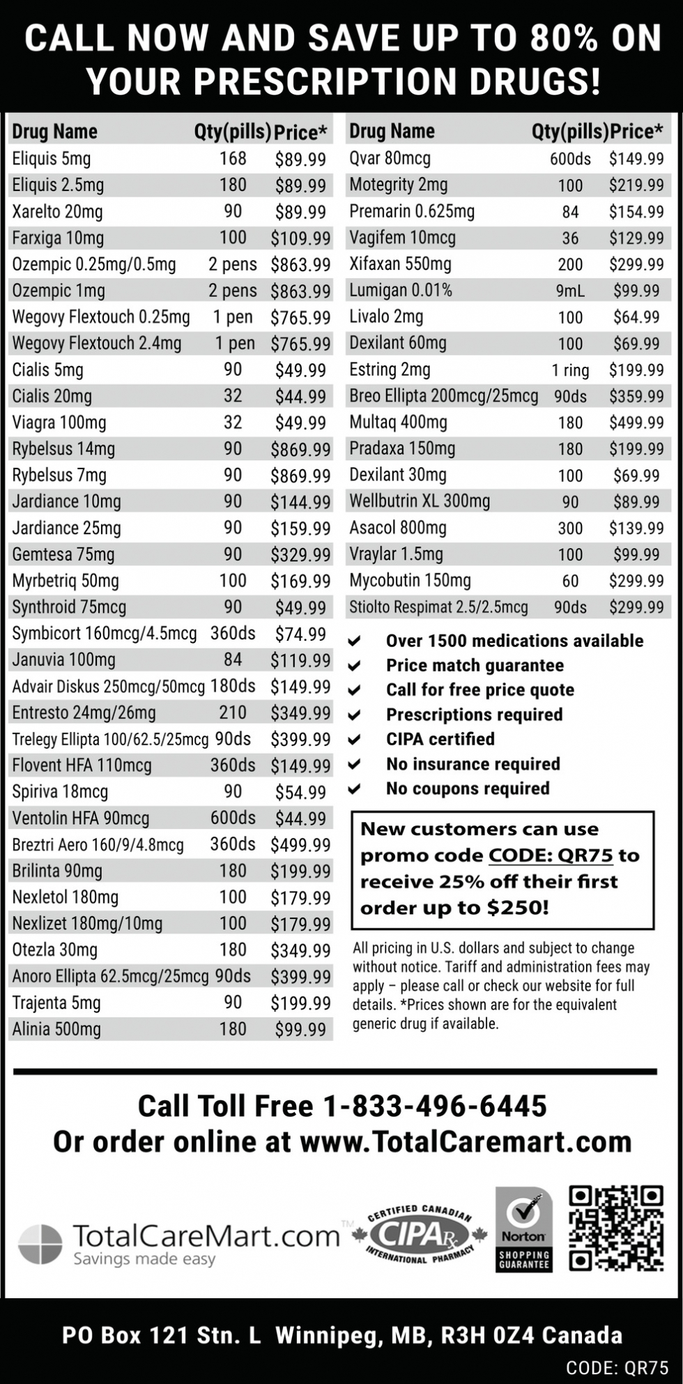 Call Now and Save Up to 80% on Your Prescription Drugs!