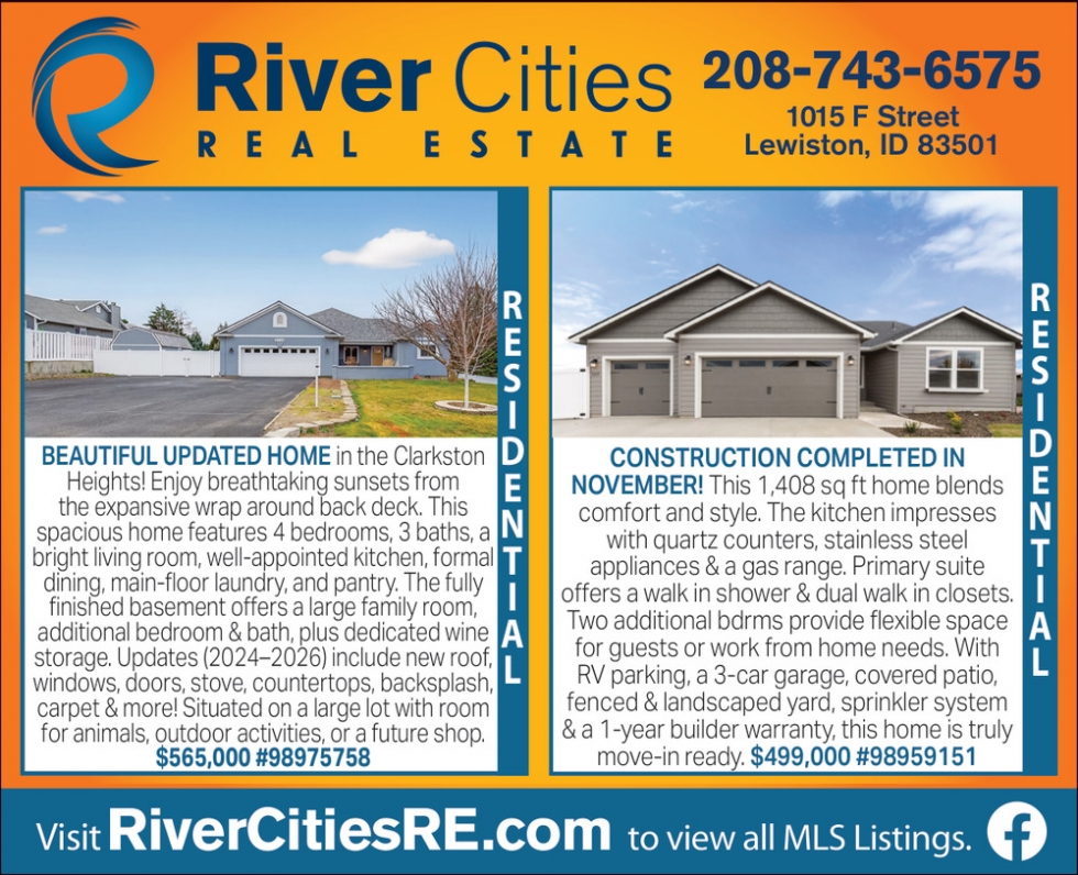 Apr 05, 2026. River Cities Real Estate Real Estate Ads from Lewiston Tribune