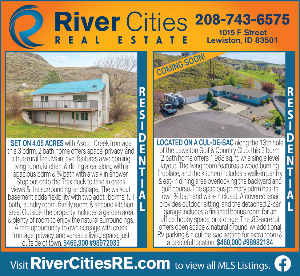 Apr 18, 2026. River Cities Real Estate Real Estate Ads from Lewiston Tribune