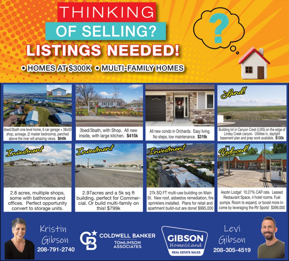Apr 18, 2026. Coldwell Banker Tomlinson Associates - Kristin Gibson Real Estate Ads from Lewiston Tribune