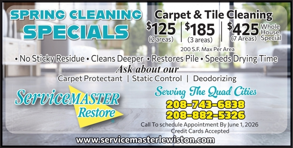 Apr 19, 2026. ServiceMaster Restore Cleaning Ads from Lewiston Tribune