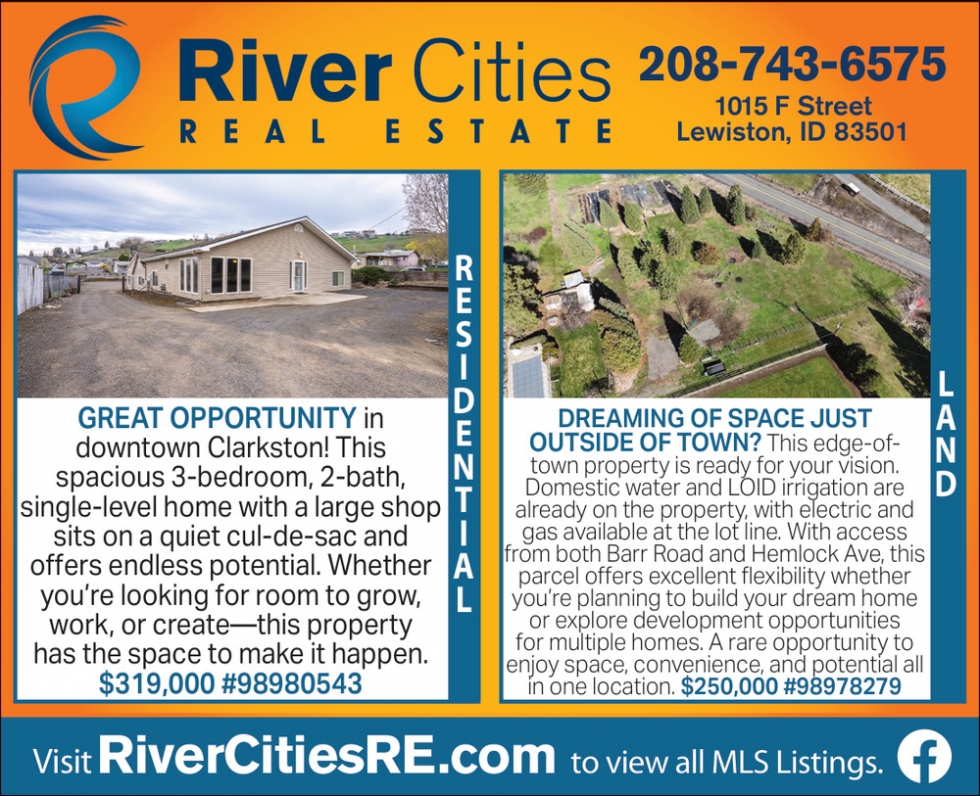 Apr 19, 2026. River Cities Real Estate Real Estate Ads from Lewiston Tribune