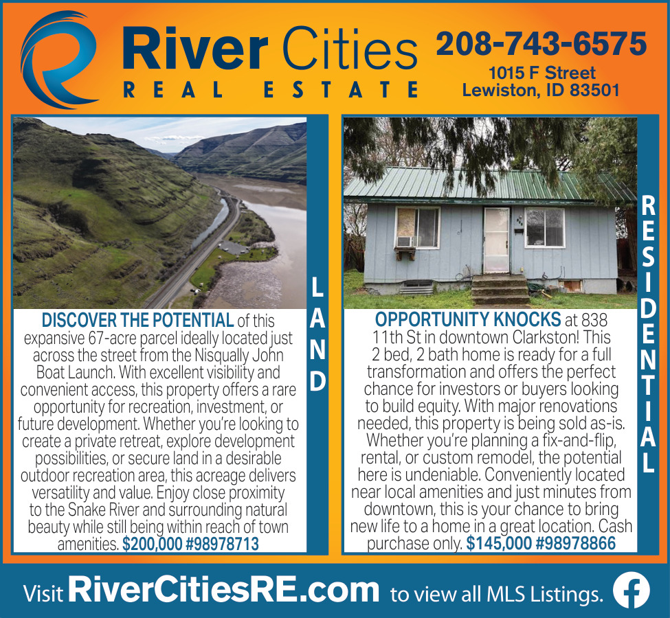 Apr 25, 2026. River Cities Real Estate Real Estate Ads from Lewiston Tribune