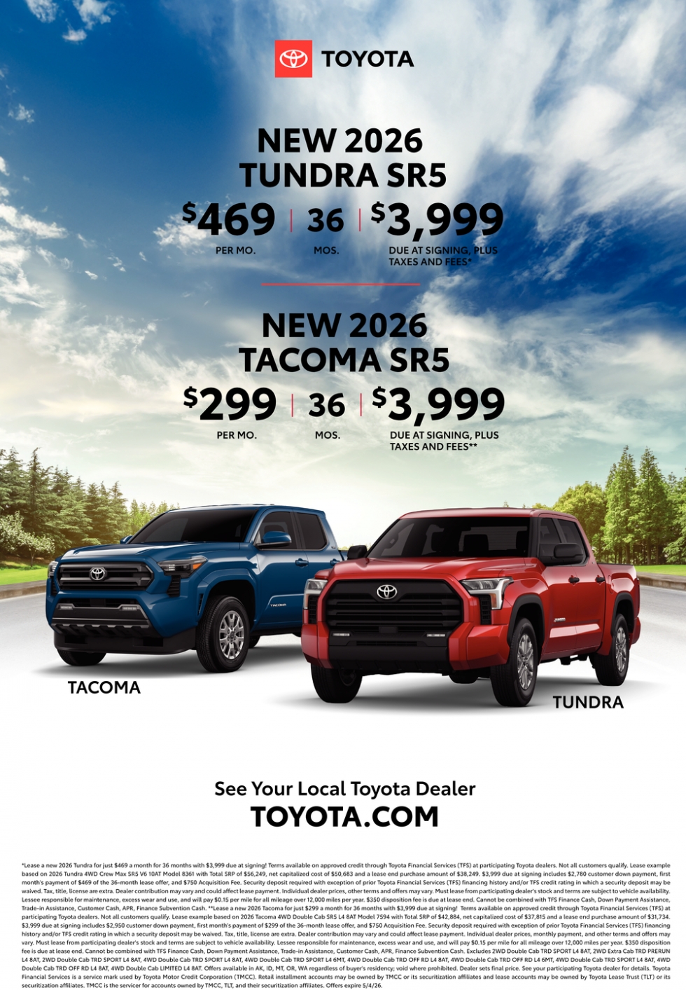 Apr 26, 2026. Toyota Auto Dealers Ads from Lewiston Tribune