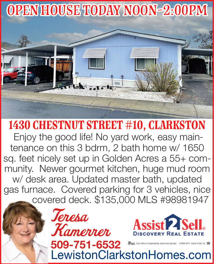 Apr 26, 2026. Assist2Sell Discovery Real Estate - Teresa Kamerrer Real Estate Ads from Lewiston Tribune