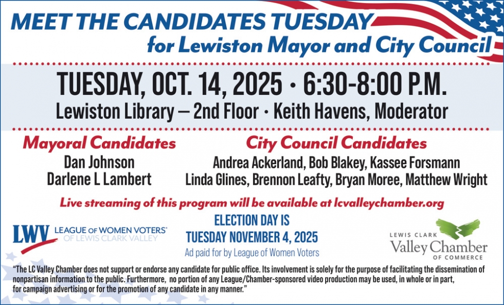 Oct 12, 2025. League of Women Voters - City Council Candidates (October 14, 2025) Events Ads from Lewiston Tribune