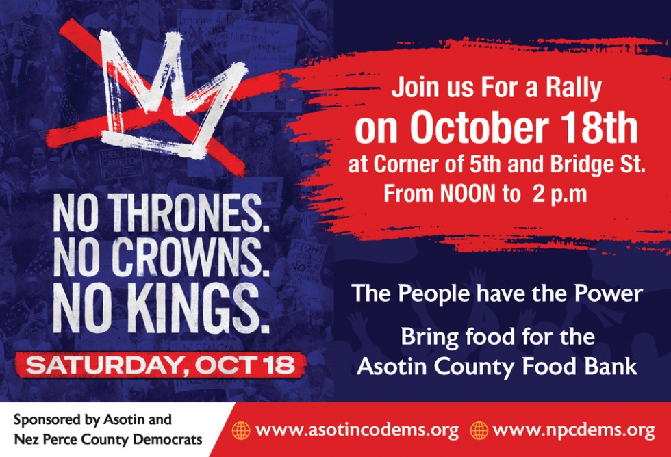 Ads for Nez Perce County Democrats - Rally (October 18th, 2025) in Lewiston, ID