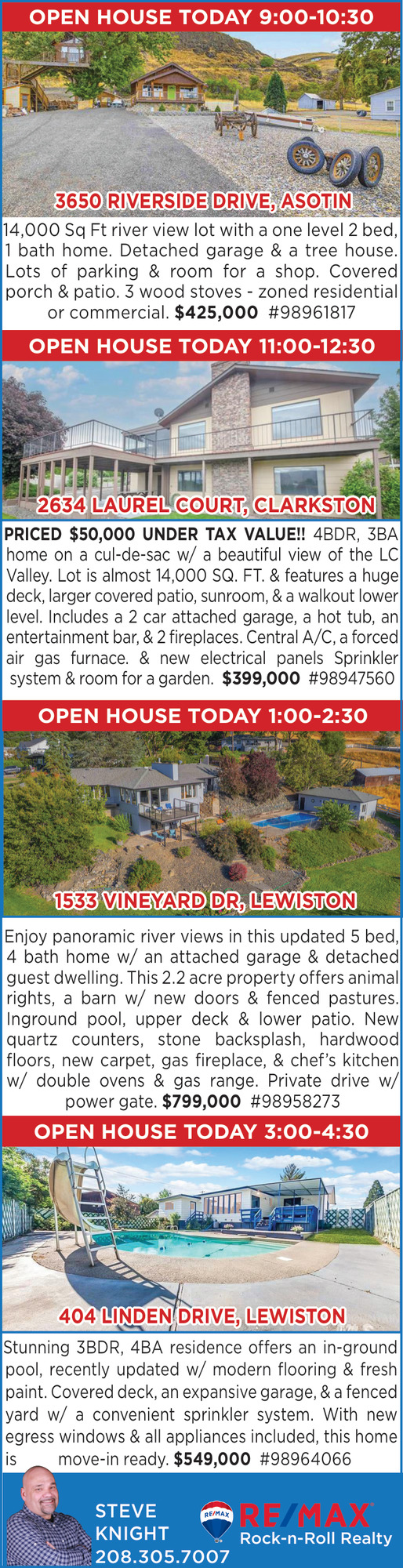 Oct 12, 2025. Re/Max Rock-n-Roll Realty - Steve Knight Real Estate Ads from Lewiston Tribune
