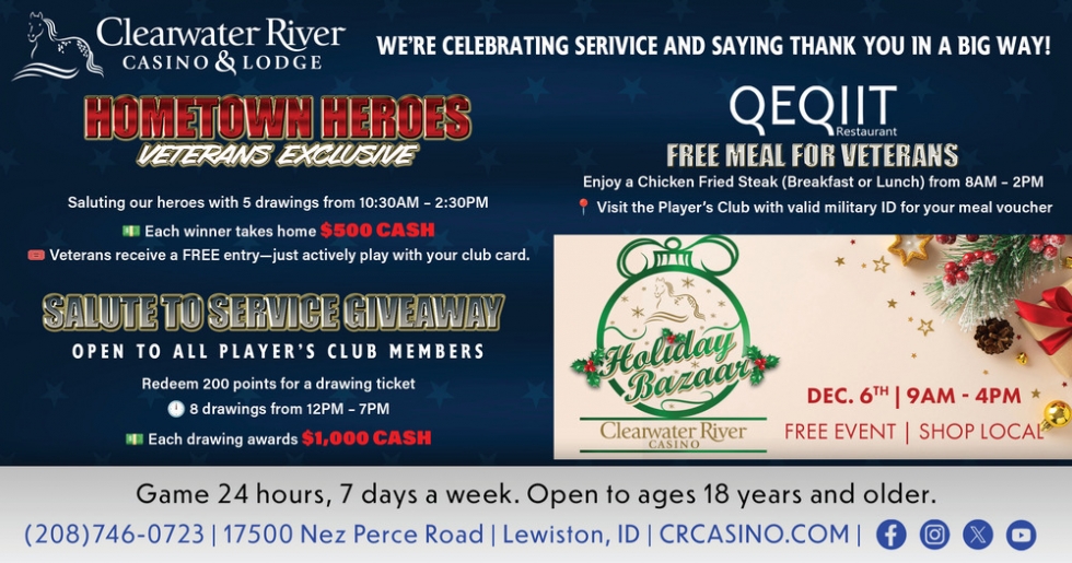 Nov 01, 2025. Clearwater River Casino & Lodge Casino Ads from Lewiston Tribune