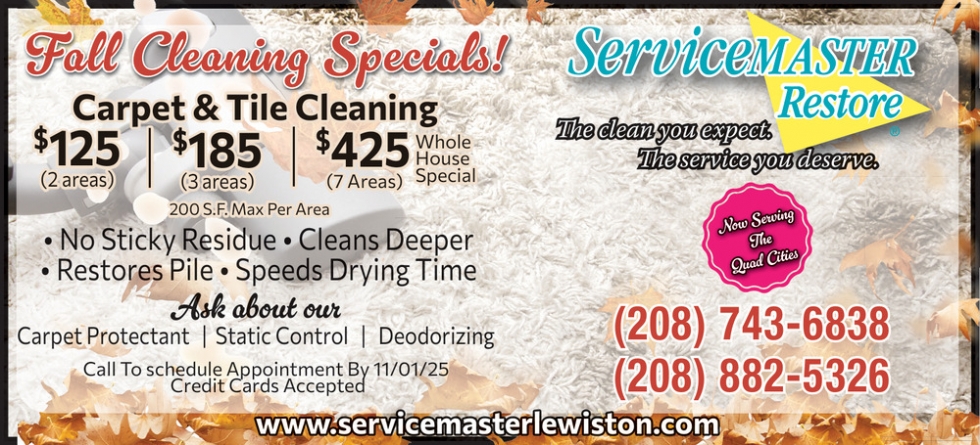Nov 02, 2025. ServiceMaster Restore Cleaning Ads from Lewiston Tribune