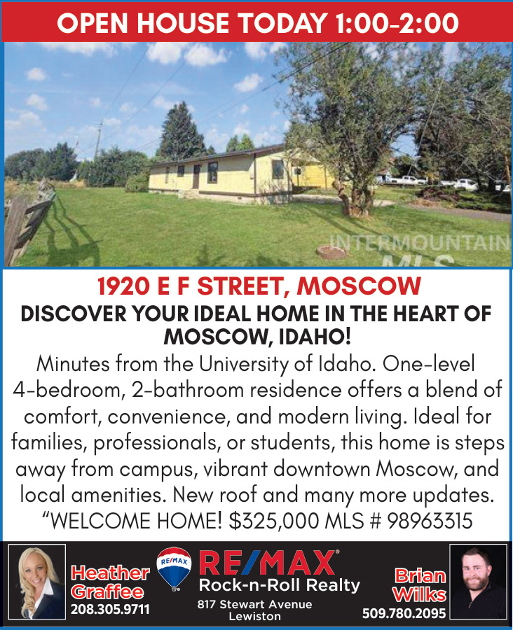 Nov 02, 2025. Re/Max Rock-n-Roll Realty - Heather Graffee & Brian Wilks Real Estate Ads from Lewiston Tribune