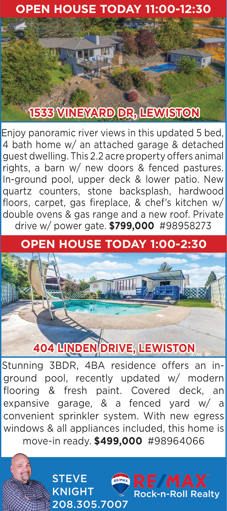 Nov 08, 2025. Re/Max Rock-n-Roll Realty - Steve Knight Real Estate Ads from Lewiston Tribune
