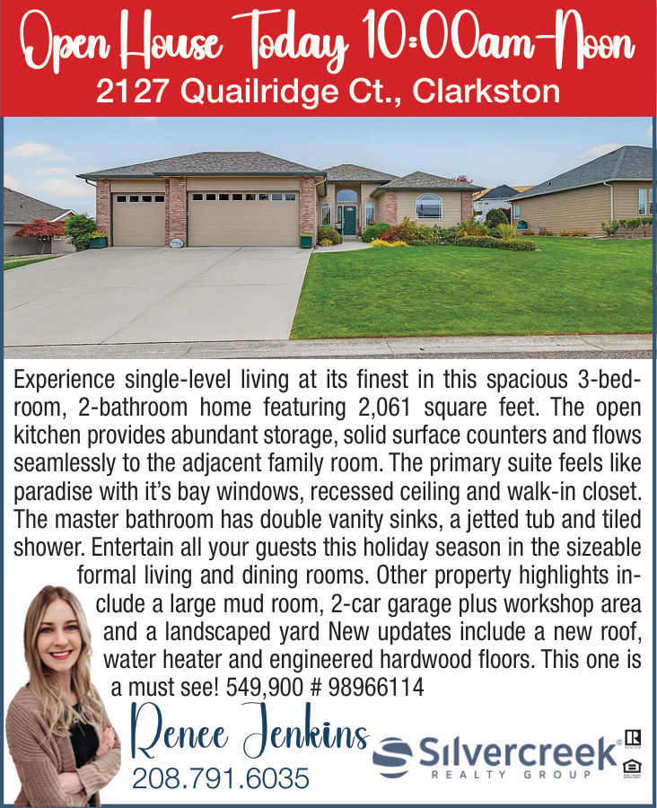 Nov 08, 2025. Renee Jenkins - Silvercreek Realty Group Real Estate Ads from Lewiston Tribune