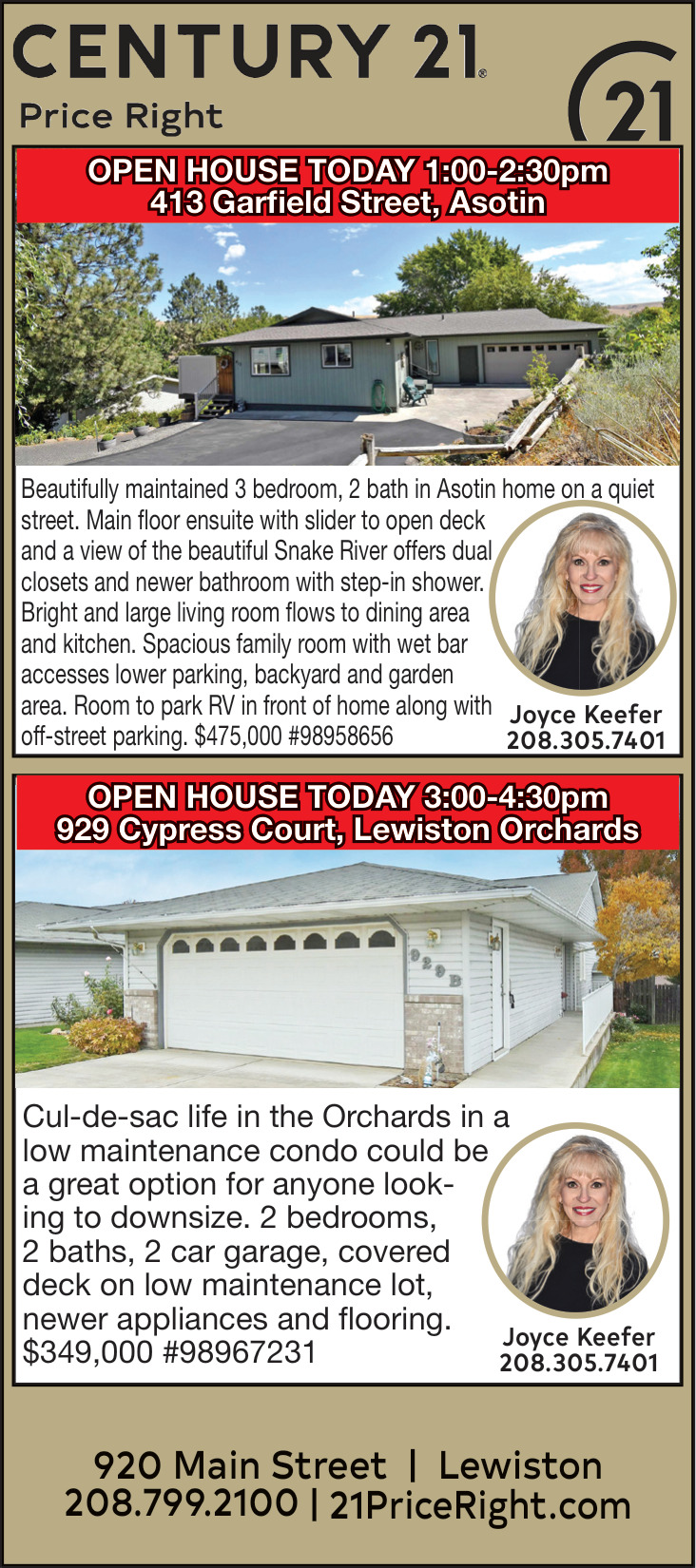 Nov 16, 2025. Century 21 Price Right - Joyce Keefer Real Estate Ads from Lewiston Tribune