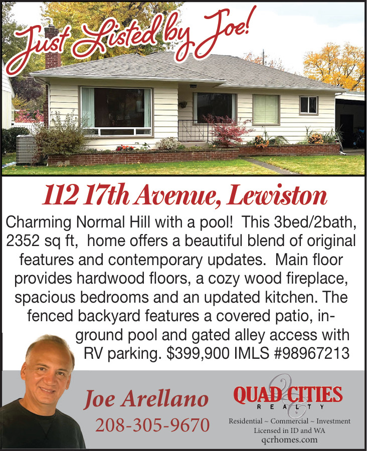 Nov 16, 2025. Quad Cities Realty - Joe Arellano Real Estate Ads from Lewiston Tribune