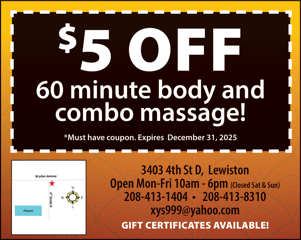 Nov 28, 2025. Airport Foot & Body Massage Health & Wellness Ads from Lewiston Tribune