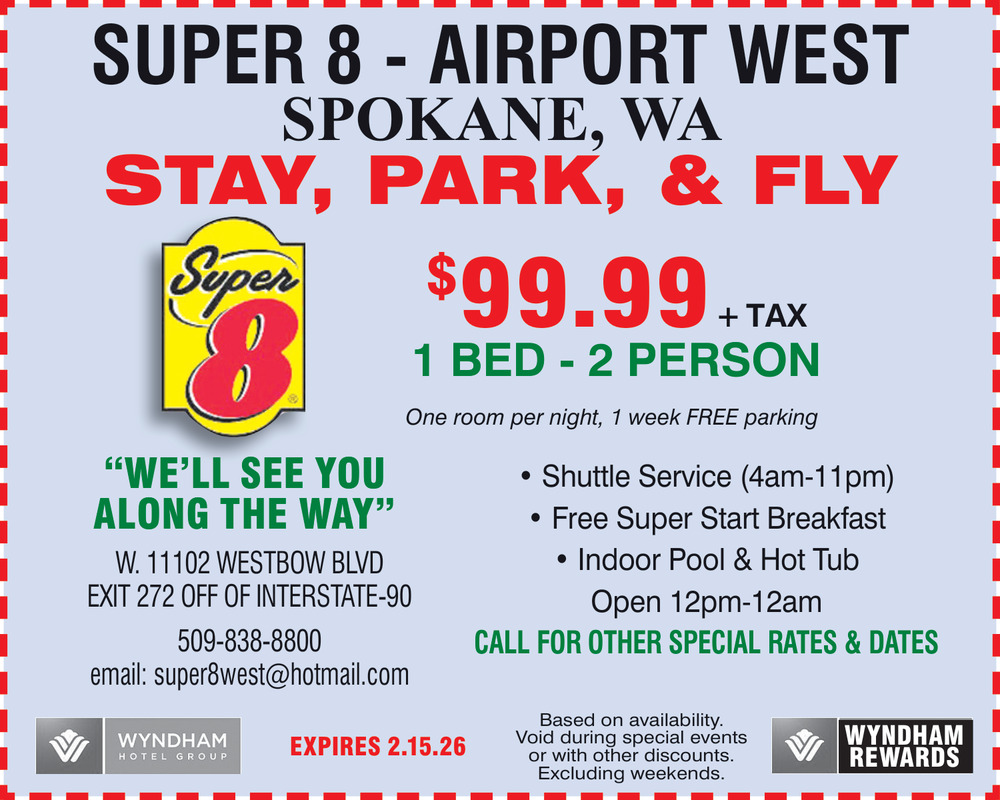 Nov 28, 2025. Super 8 - Airport West Hotel & Resort Ads from Lewiston Tribune