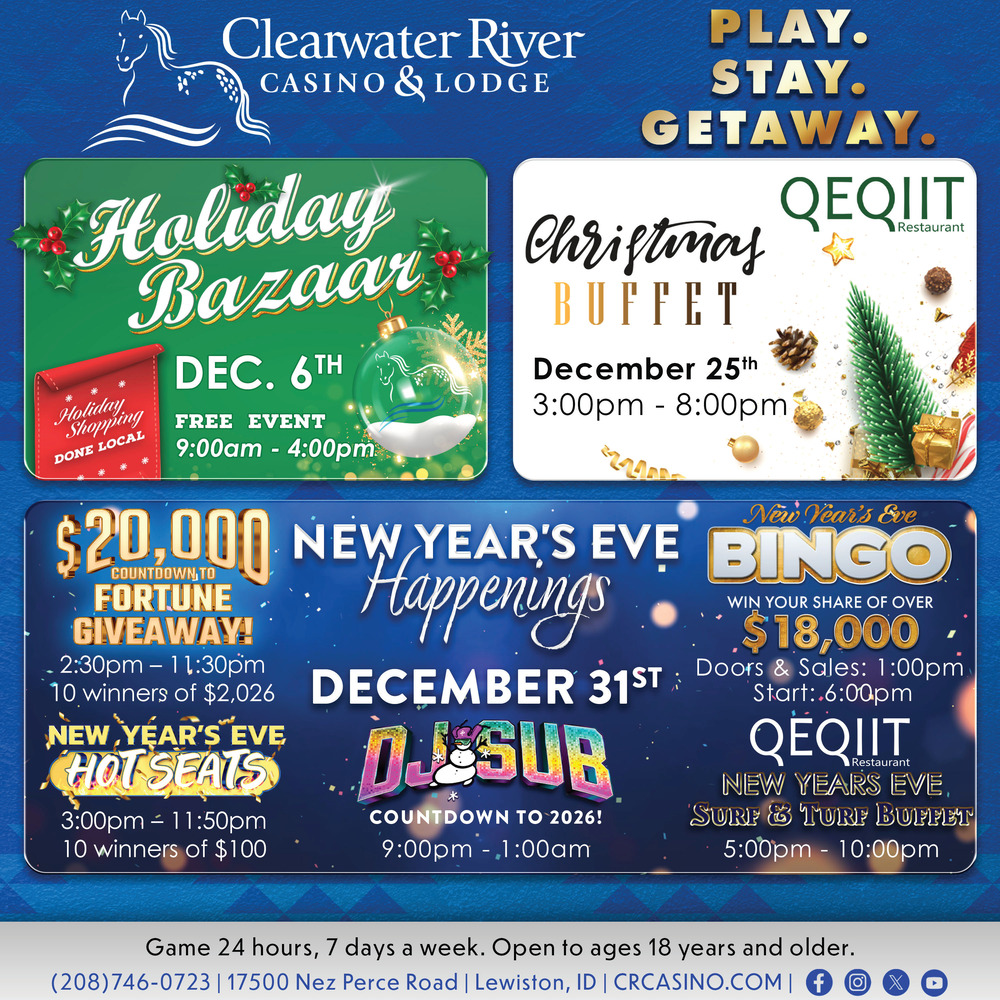 Nov 29, 2025. Clearwater River Casino & Lodge Casino Ads from Lewiston Tribune