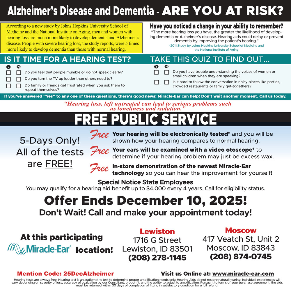 Dec 03, 2025. Miracle-Ear Hearing Aid Center Hearing Ads from Lewiston Tribune