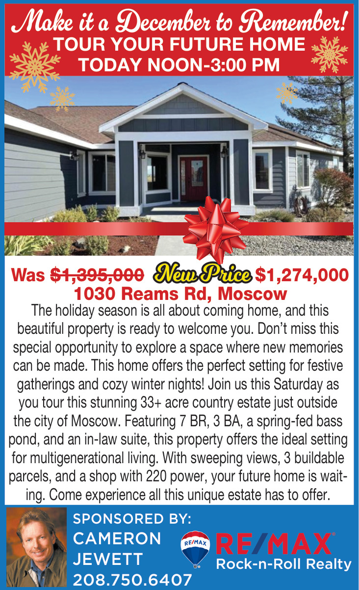 Dec 06, 2025. Re/Max Rock-n-Roll Realty - Cameron Jewett Real Estate Ads from Lewiston Tribune